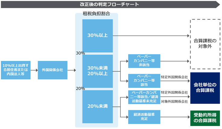 改正前は、外国子会社の税負担水準が20%以上であれば経済実体を伴わない所得であっても合算されない一方、実体ある事業から得た所得であっても合算されてしまう場合があるとの問題が指摘されていました。